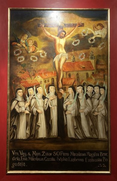 Klasztor wkrótce odbudowano, ale już w nowym miejscu. Przeniesiono go o kilkaset metrów od pierwotnej lokalizacji i umiejscowiono nad rzeką Radunią, w bezpośrednim sąsiedztwie należącej do mniszek wsi Żukowo. Kolejne pokolenia zakonnic pielęgnowały pamięć swoich poprzedniczkach. Najllepszym tego dowodem kaplica św. Jana Nepomucena. Wybudowana w XVIII wieku, w miejscu męczeńskiej śmierci pierwszych norbertanek. Jednocześnie, specjalnie na potrzeby wyposażenia tego obiektu, namalowany został obraz przedstawiający zamordowane norbertanki, którego oryginał możemy dziś oglądać we wnętrzu kościoła Wniebowzięcia NMP w Żukowie, a kopię w Muzeum Norbertanek Żukowskich.
